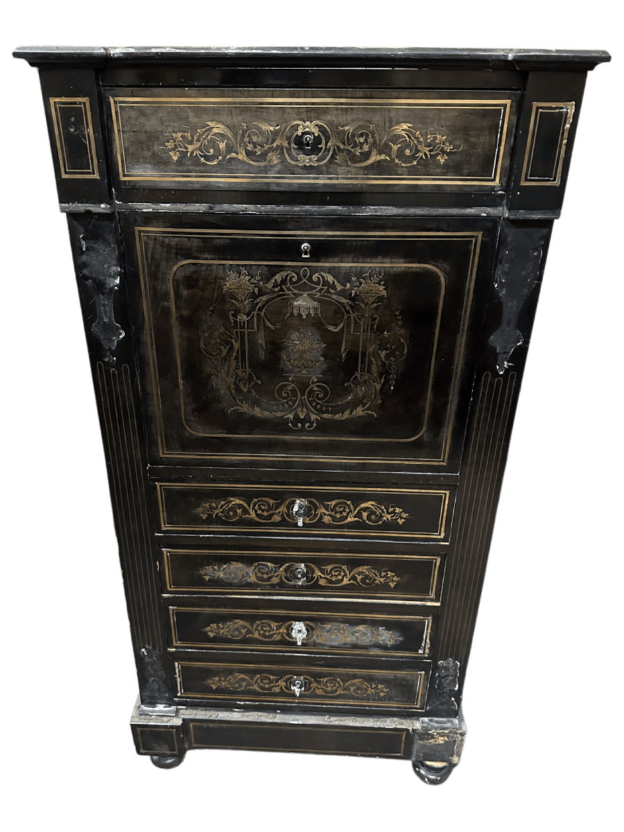 Avant restauration. Restauration à Paris - Vincennes d'un secrétaire d'époque Napoléon III Après restauration. Restauration à Paris - Vincennes d'un secrétaire d'époque Napoléon III