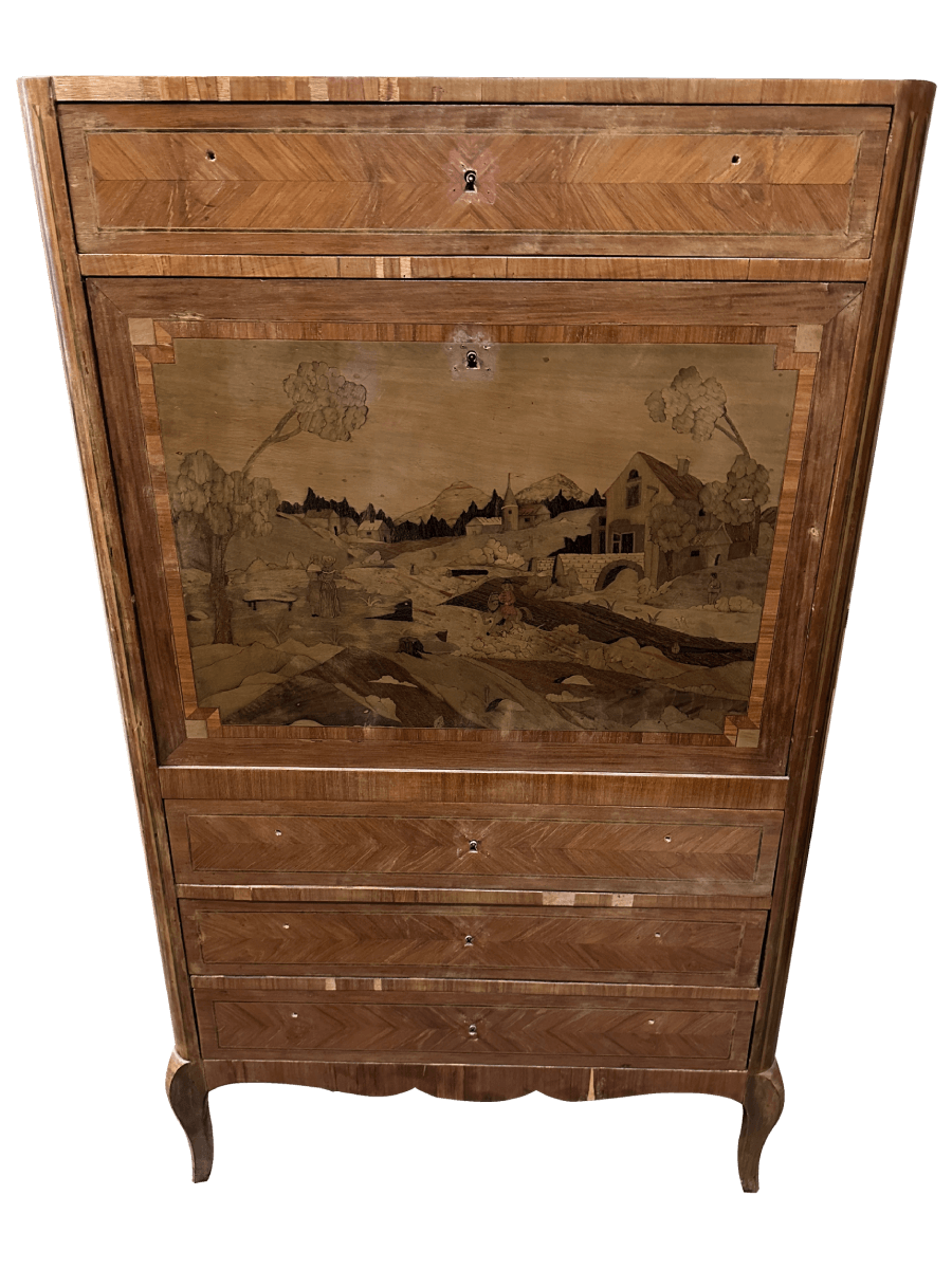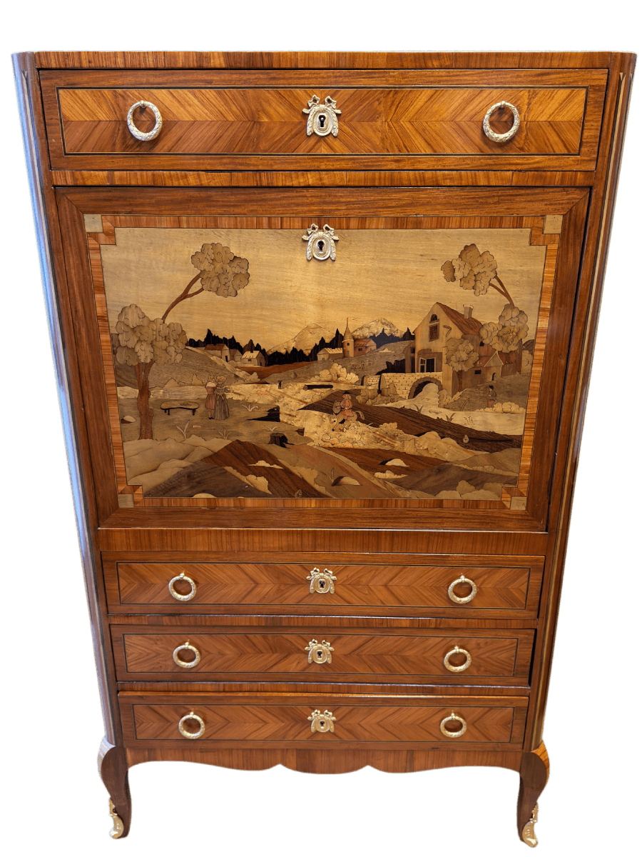 Avant restauration. Restauration à Paris - Vincennes d'un secrétaire du XIX ème siècleX Après restauration. Restauration à Paris - Vincennes d'un secrétaire du XIX ème siècle